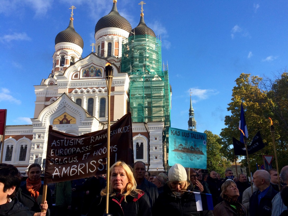 TALLINN – Protestors marched through the Estonian capital today bearing flags, banners, and torches of fire — part of a 24 hour anti immigrant rally calling for stricter EU border controls and a national referendum on whether Estonia should take in EU quotas of refugees.